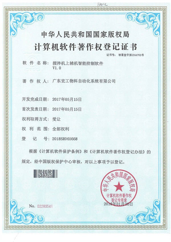 软件著作权-搅拌机上辅机智能控制软件V1.0