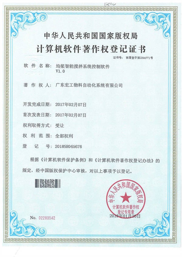 软件著作权-均浆智能搅拌系统控制软件V1.0